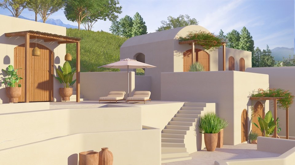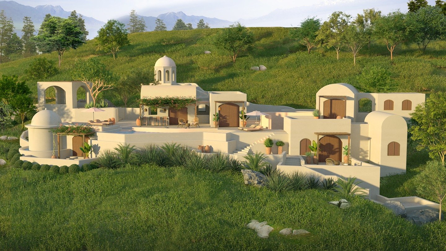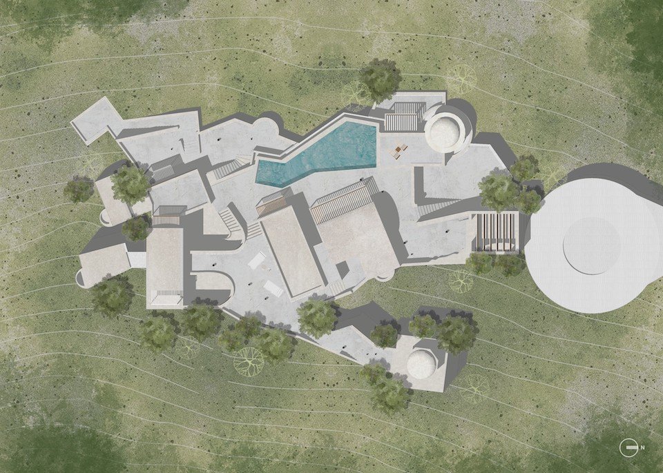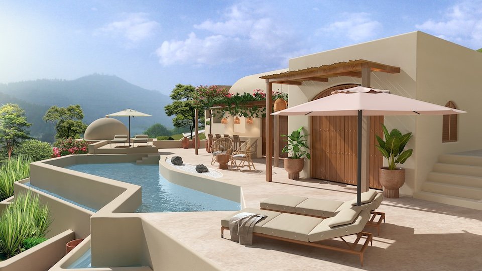 Drawing from the aesthetics of Moroccan and Balinese resorts, this retreat encapsulates an exotic yet tranquil vibe. Furthermore, underpinned by the gentle, meditative atmosphere typical of such locations. The architectural form, combined with the surrounding natural environment, immerses guests in a sensory experience that blends rich cultural influences with the natural elements of the hill.